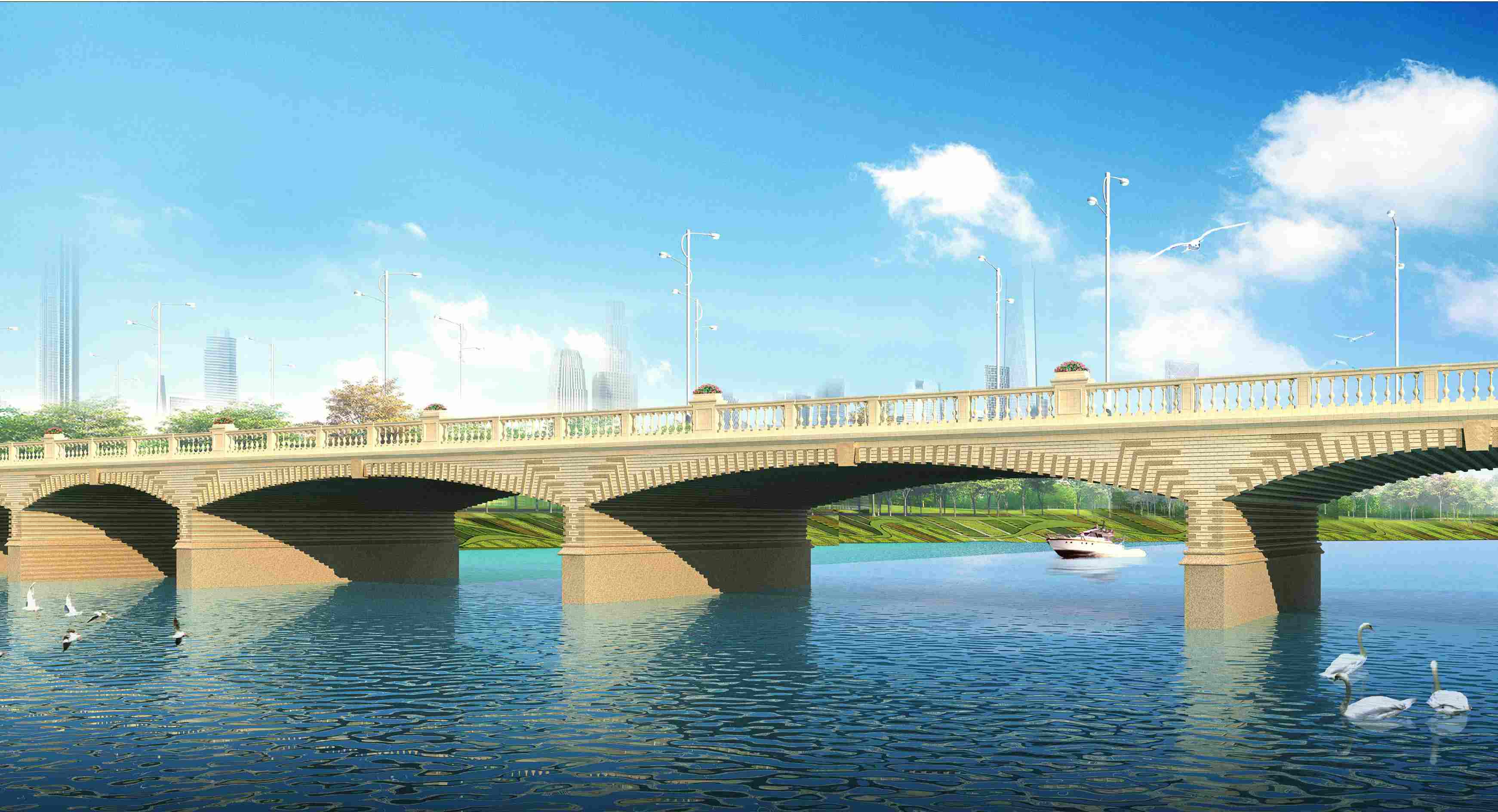 漯河市太白山路沙河桥位于漯河市太白山路沙河桥上,桥南与泾河路相接,桥北与辽河路相连,规划为城市主干道,行车速度60KM/h,太白山路桥北引道长360.92m(其中跨滨河路桥为1×20m),南引道长254.92m(其中跨沙南新路桥为1×20m),道路总长度为980m。