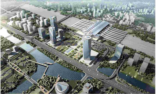 4、人行集散空间及地下服务设施,包括西广场区域景观,地下停车场、换乘大厅、商业空间及配套附属用房等。